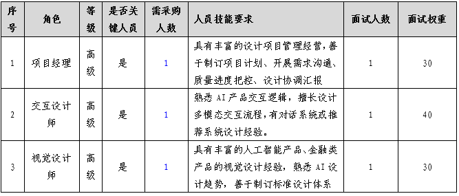 三、项目整体人员采购及面试说明