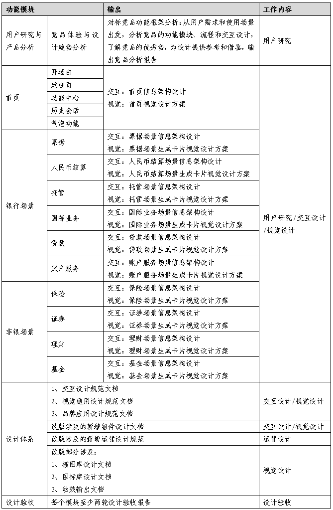 对公大模型体验设计项目主要需求概述