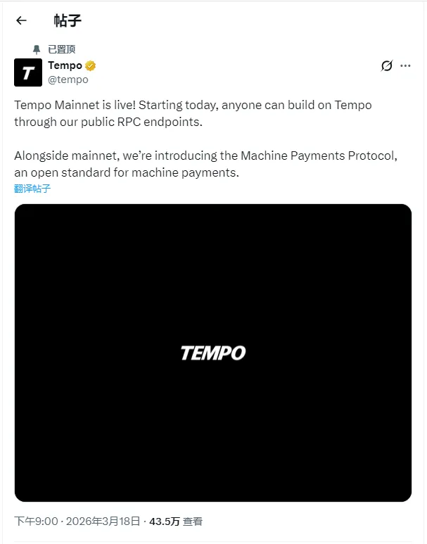 移动支付网3月18日消息,稳定币支付公链tempo宣布主网正式上线。这意味着,所有开发者都可以通过公共rpc(远程过程调用)端点在tempo上进行开发。除了主网之外,tempo还将推出机器支付协议(mpp协议),该协议也是一项开放标准。